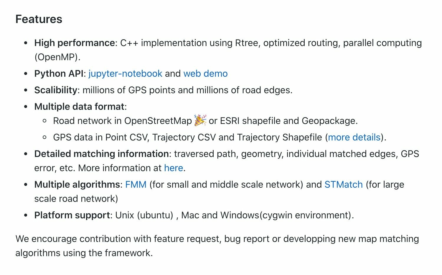 推荐一个基于 C++ 和 Python 语言实现的快速地图匹配框架:Fast Map Matching。