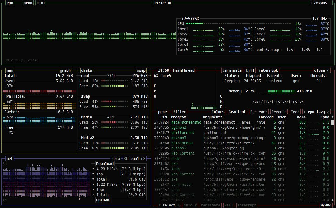 分享 GitHub 上一个开源的 Linux / OSX / FreeBSD 资源监控工具:bpytop。