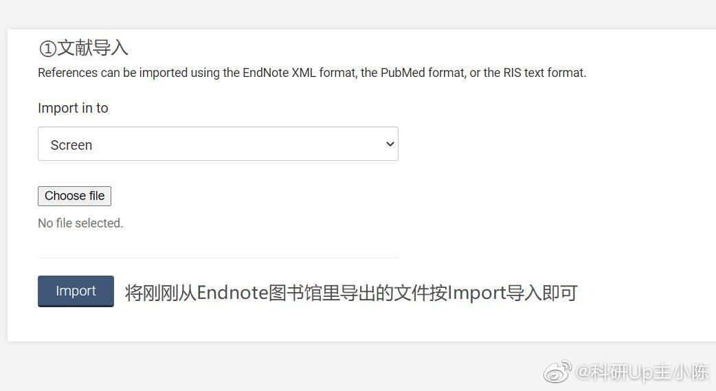 它的优点是协同性很高,可以和很多文献管理软件共同配合使用,比如EndNote,Zotero,Refworks,Mendeley,或者是一些文献搜索网站直接导出的RIS,CSV或者PubMed XML。图是我用Endnote导出文献记录的方法,大家可以参考一下。