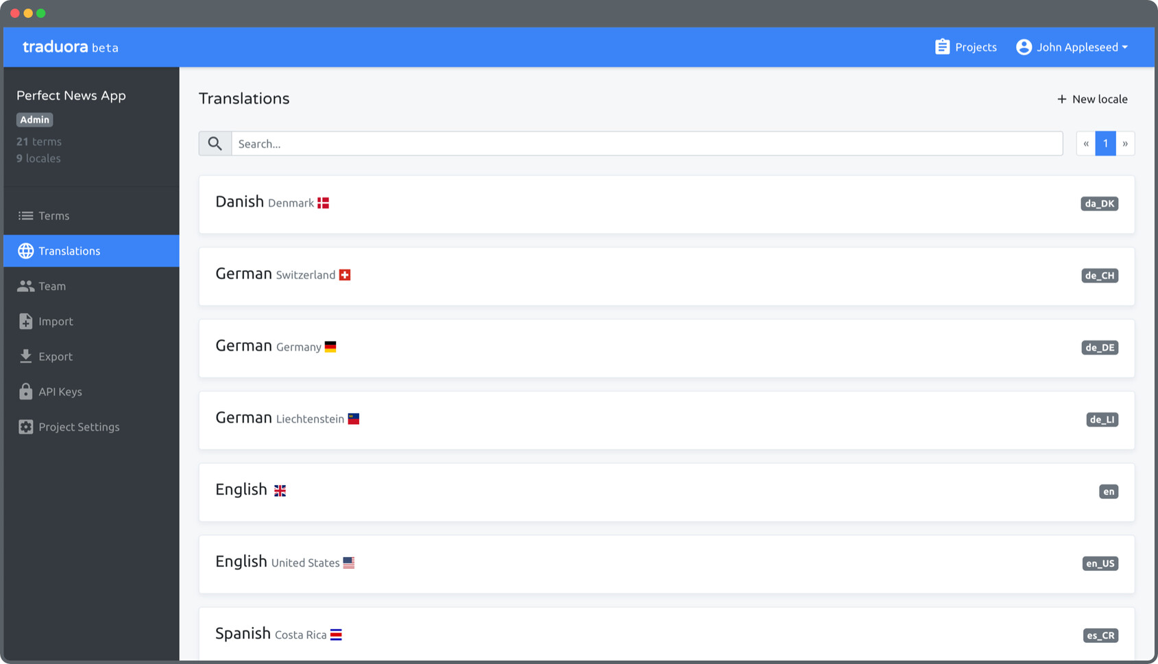 一个开源翻译平台 traduora,支持多人协作在线翻译,可导入导出 JSON、CSV、YAML 等多种文本格式。推荐给需要用到国际化翻译的同学。