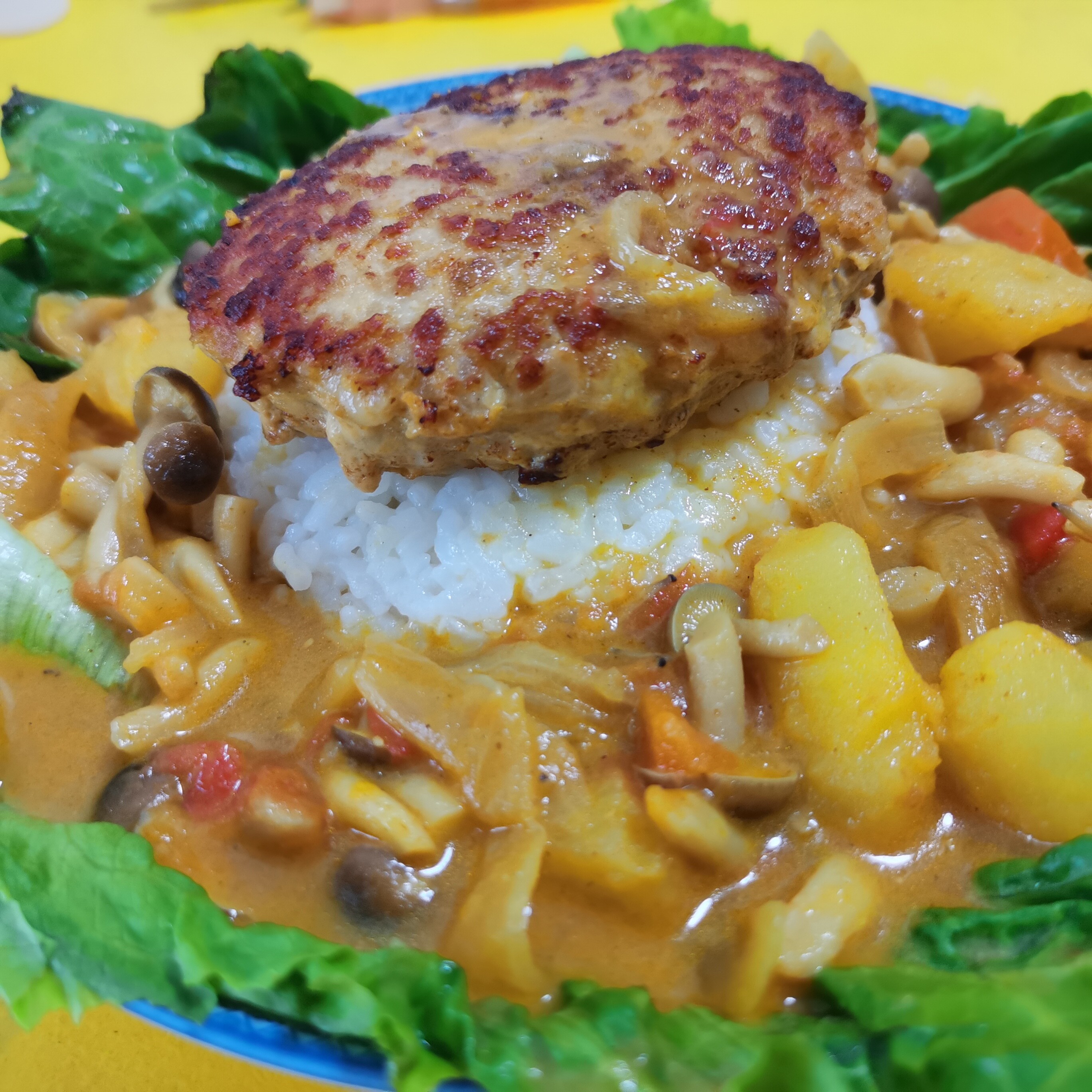做了摆盘很做作的汉堡肉咖喱,以及深刻反省自己之前说汉堡肉是饺子馅的言论,汉堡肉没有面包糠/吐司碎就不是汉堡肉了……