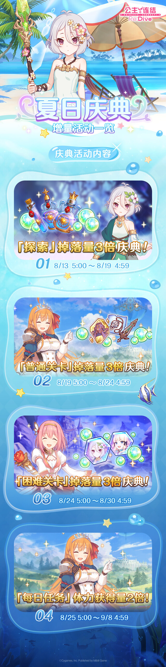 8月24日 5:00起,游戏内将开展夏日特别增量活动——「困难关卡」掉落量3倍庆典!