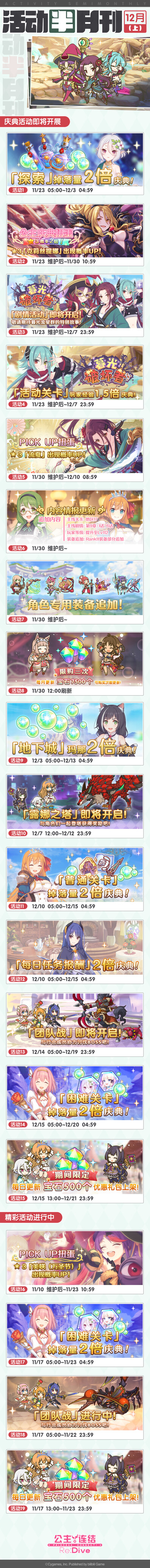 活动半月刊(十二月上)已公布,请骑士君留意十二月上旬常规活动的开展时间哦~