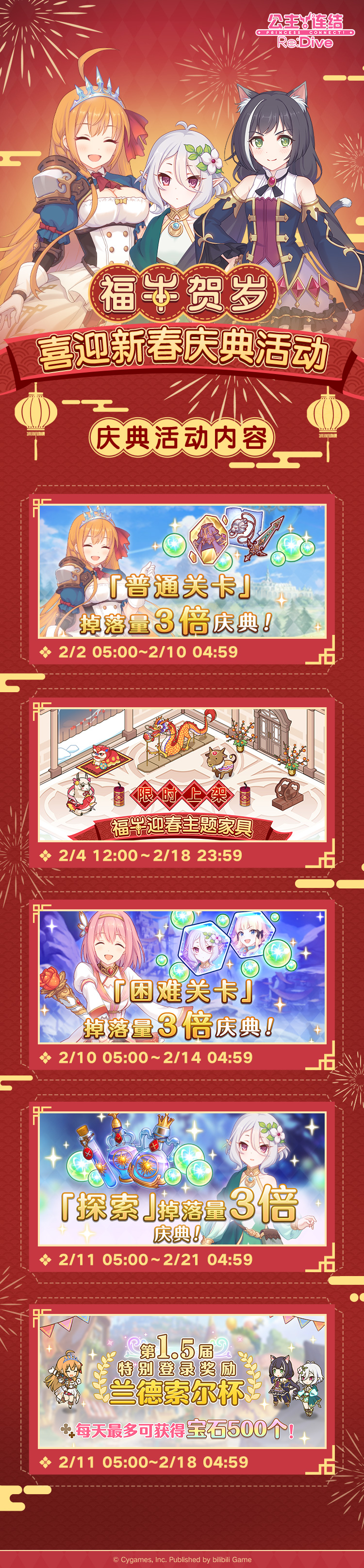 《公主连结Re:Dive》即将与各位骑士君共同迎来新的一年,我们将在这个重要的节日期间,开展「福牛贺岁 喜迎新春庆典活动」!