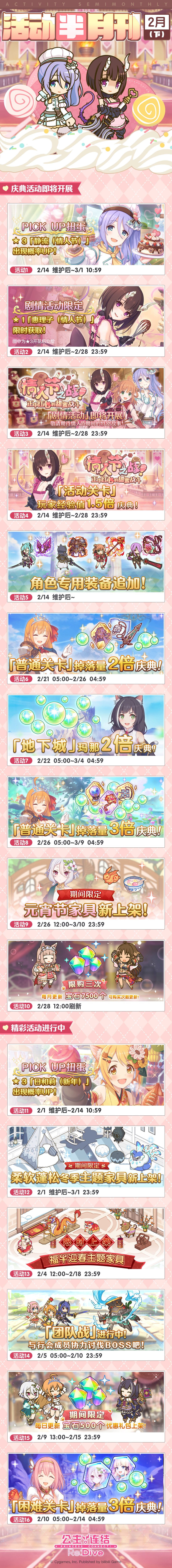 活动半月刊(二月下)已公布,请骑士君留意二月下旬常规活动的开展时间哦~