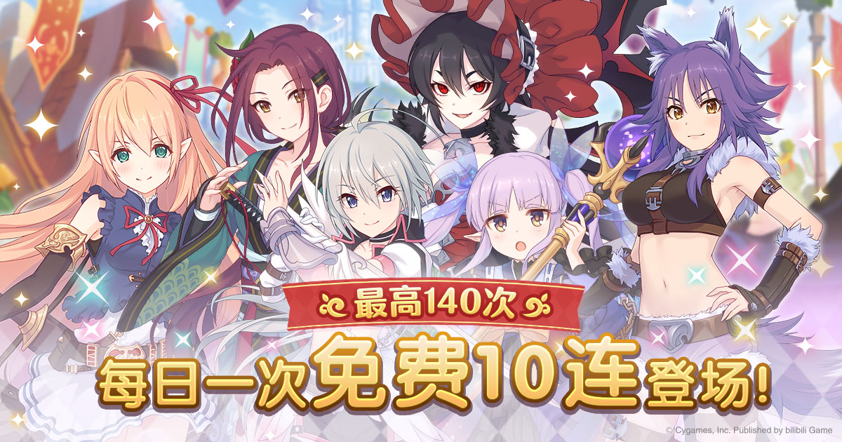 公主庆典扭蛋中,★3角色出现概率为通常的2倍!「每日一次免费十连」庆典也将持续开展至3月15日04:59!还请骑士君们不要错过哦♪