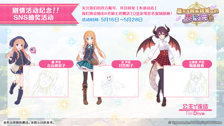 2. 上述日程如有变更,我们将第一时间于各大官方账号告知大家,欢迎骑士君们关注我们的官方微博、微信和动态(公主连结ReDive)。