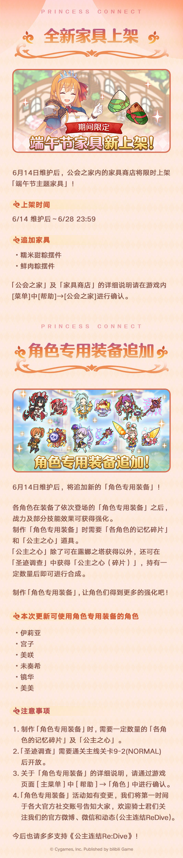 //转发自: @公主连结ReDive: 6月14日例行维护公告