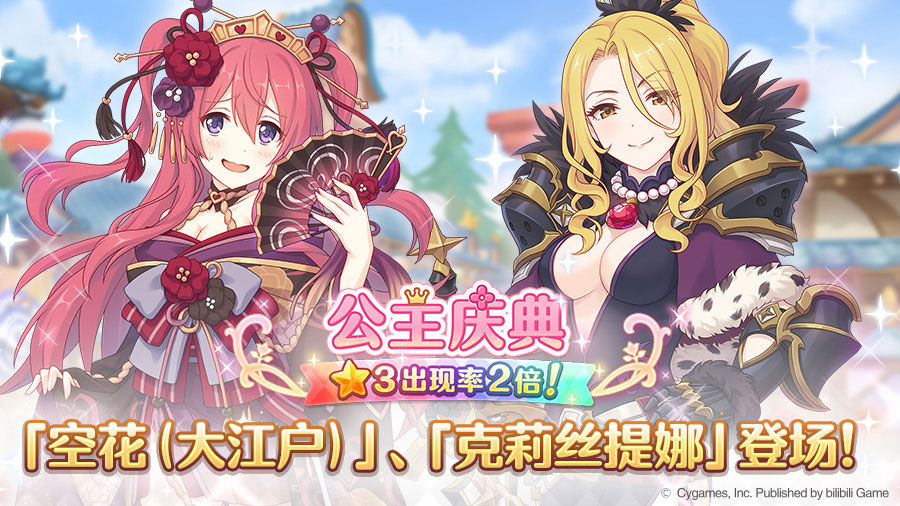公主庆典扭蛋中,「★3空花(大江户)」和「★3克莉丝提娜」出现概率将进行提升!