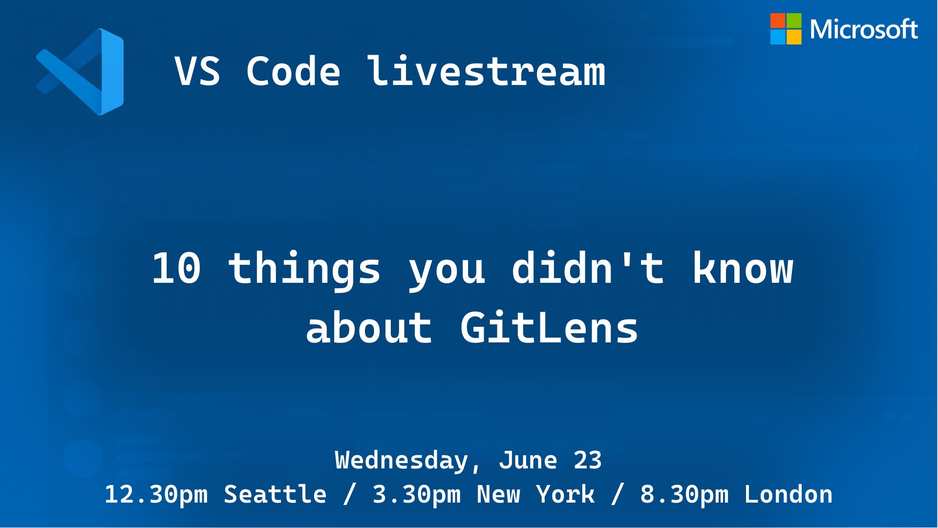 I will be going over many powerful features in GitLens, and there will be a Q&A at the end.