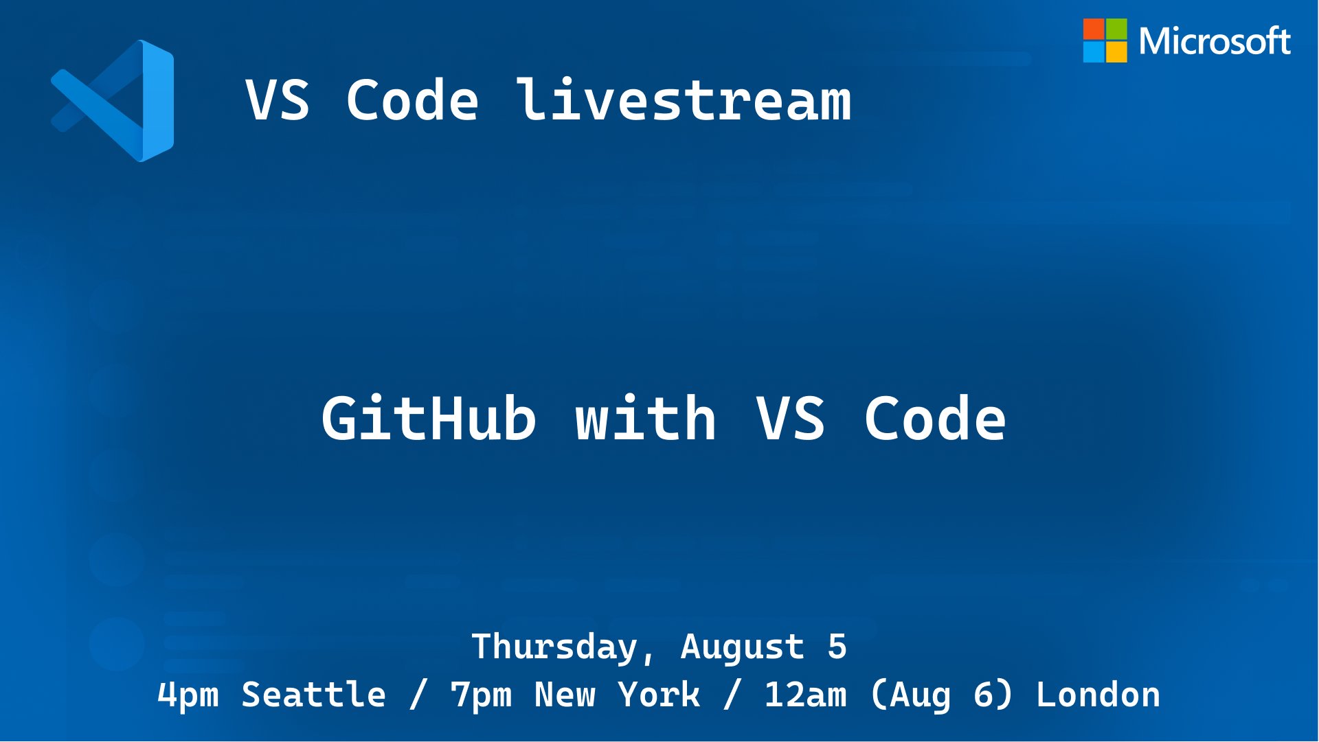 📺 We're about to go live! Tune in at 4pm Pacific (that's in 🔟 minutes!) to learn about working with @github in VS Code. Join @damovisa's livestream and Q&A.