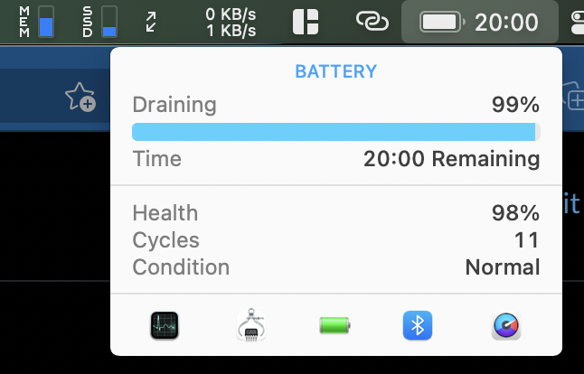 John Lam: It's pretty amazing how long an M1 Macbook Air battery can last when your other computer is an Azure Datacenter. This is after 1 hour using VS Code to connect to a Docker container running on an Azure VM using a tethered iPhone while sketchily hacking in a parking lot: