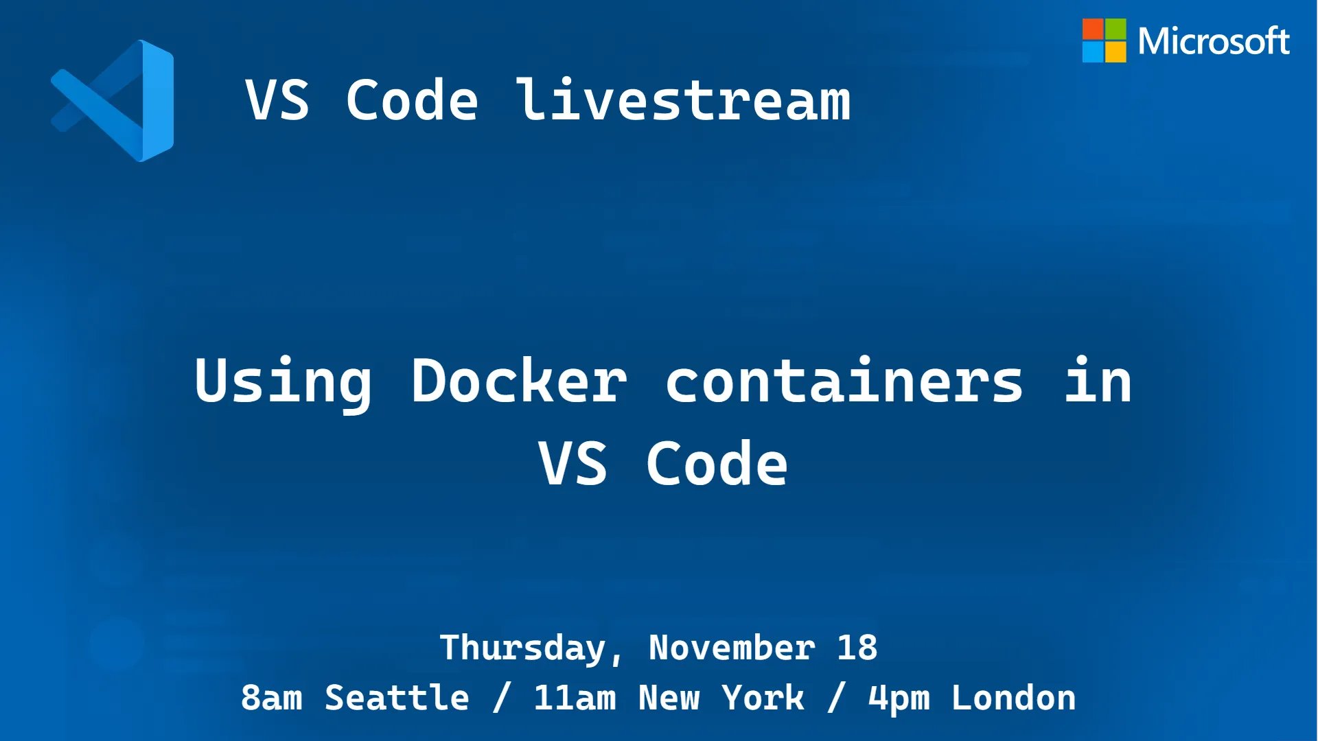 This week's livestream is all about containers 📦 Let's hear from Brandon and @UcheNkadi about using Docker with VS Code, including writing Dockerfiles and managing containers