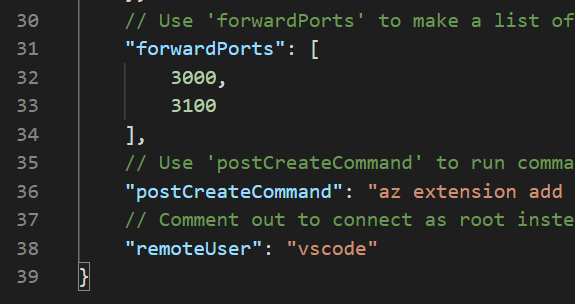 Put other setup commands in postCreateCommand