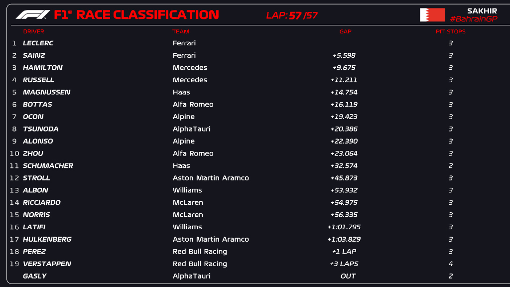 CARLOS: “Ferrari is back, the hard work has paid off. Congratulations to Charles, and I managed to bring the 1-2 back for the team”