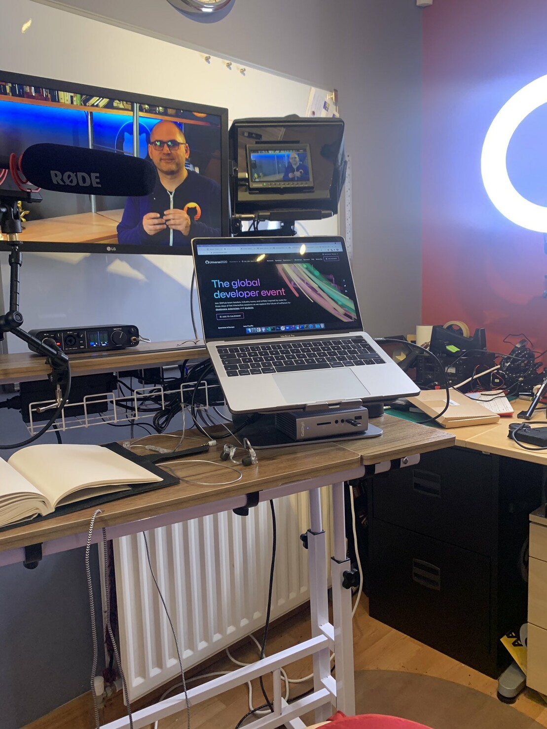 Martin Woodward: Getting ready for #GitHubUniverse - done some upgrades to my presenting kit over this year of remote conferences. No more propping things up on cardboard boxes for me!