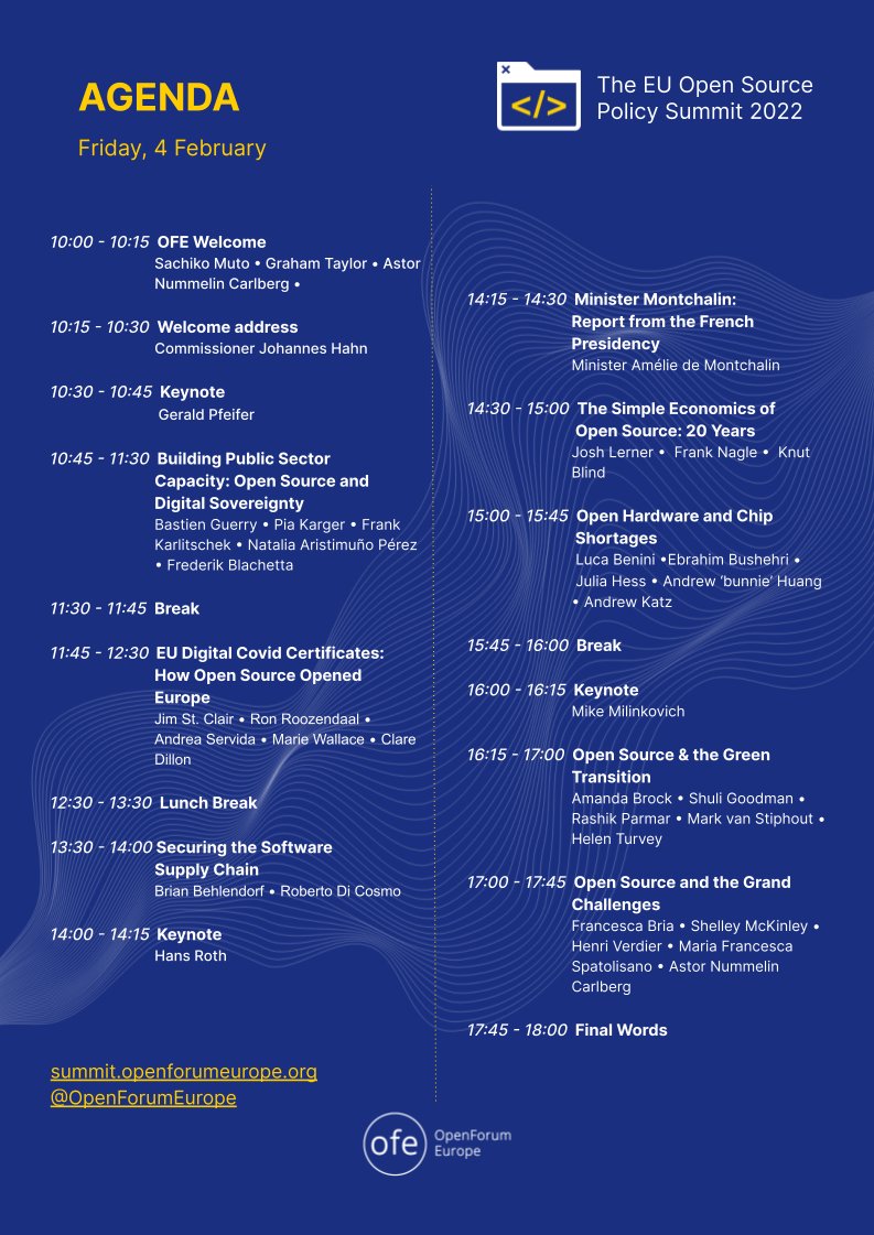 Don’t miss @OpenForumEurope’s EU Open Source Policy Summit this Friday at 10:00 CET. Our own @shelleymckin will be speaking on Open Source and the Grand Challenges at 17:00.