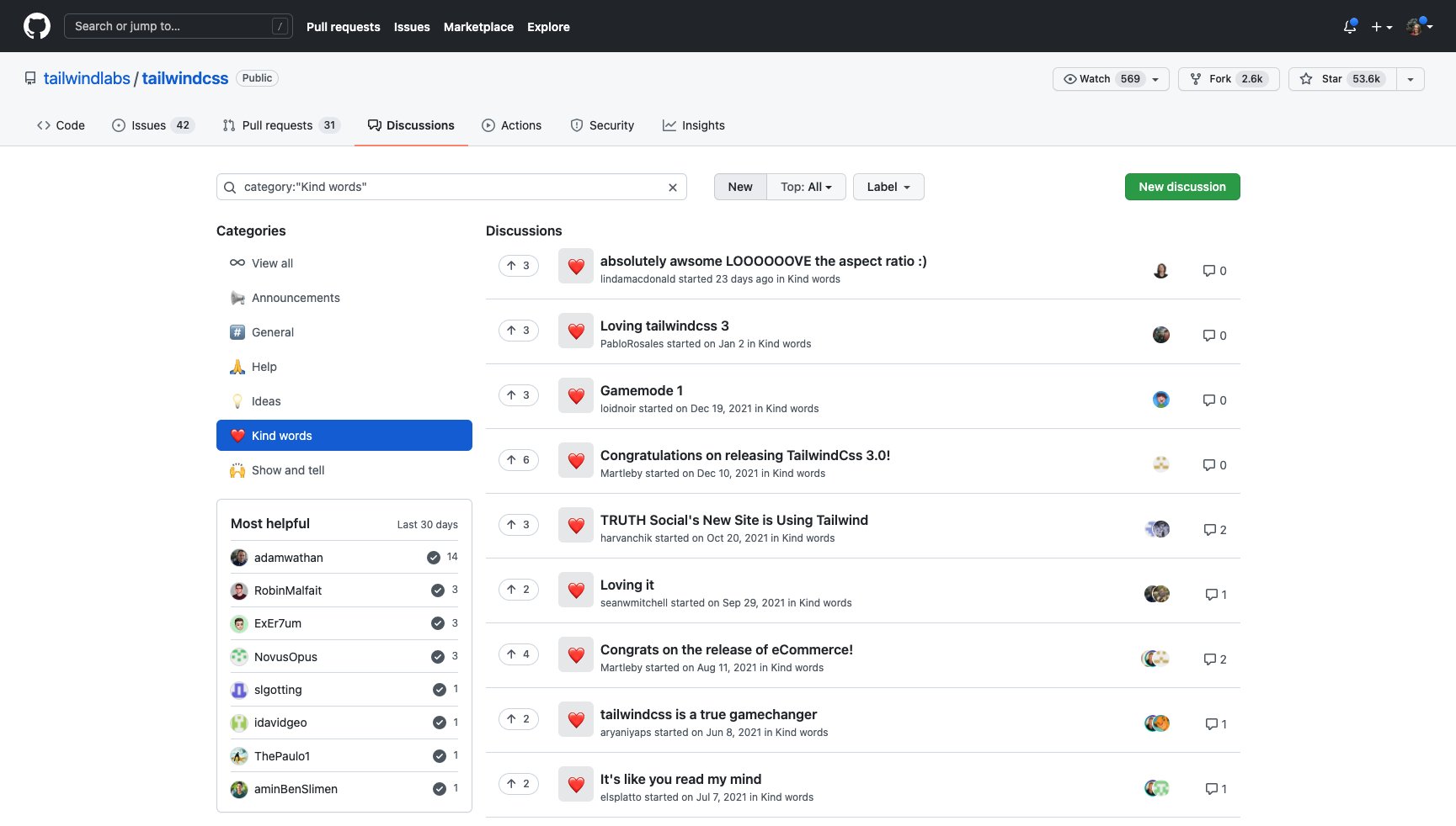 We love seeing communities share kind words with one another ❤️ @tailwindcss gives its community the opportunity to do so in GitHub Discussions