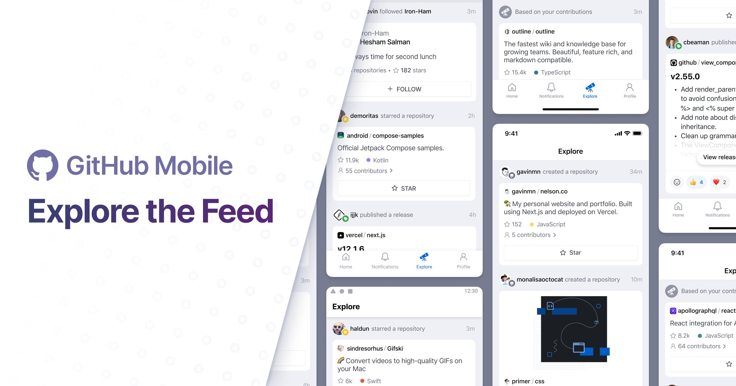The Feed is now on GitHub Mobile! Browse the Feed to discover the coolest projects on GitHub, keep up with the people you're following, and learn about the latest releases from the repos you love, all while on the go!