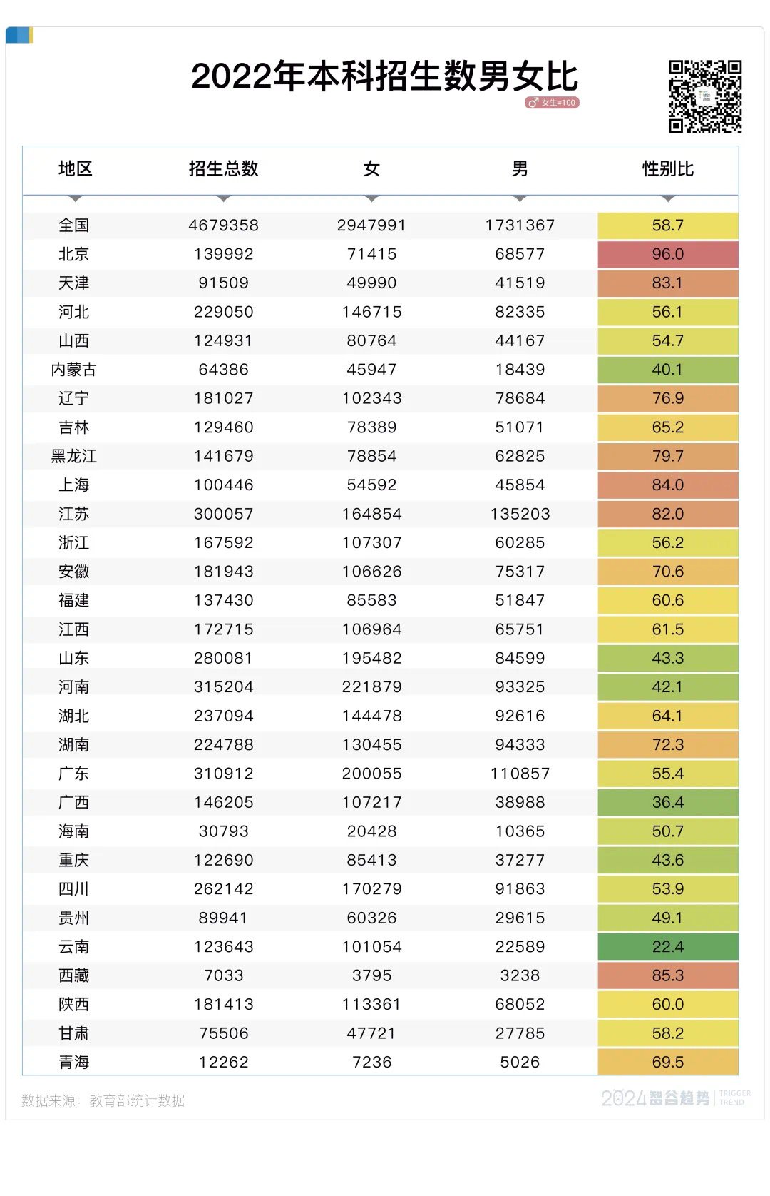 刷到一条推震惊到我了,22年高考本科录取女男比例已经达到惊人的 17 : 10 了