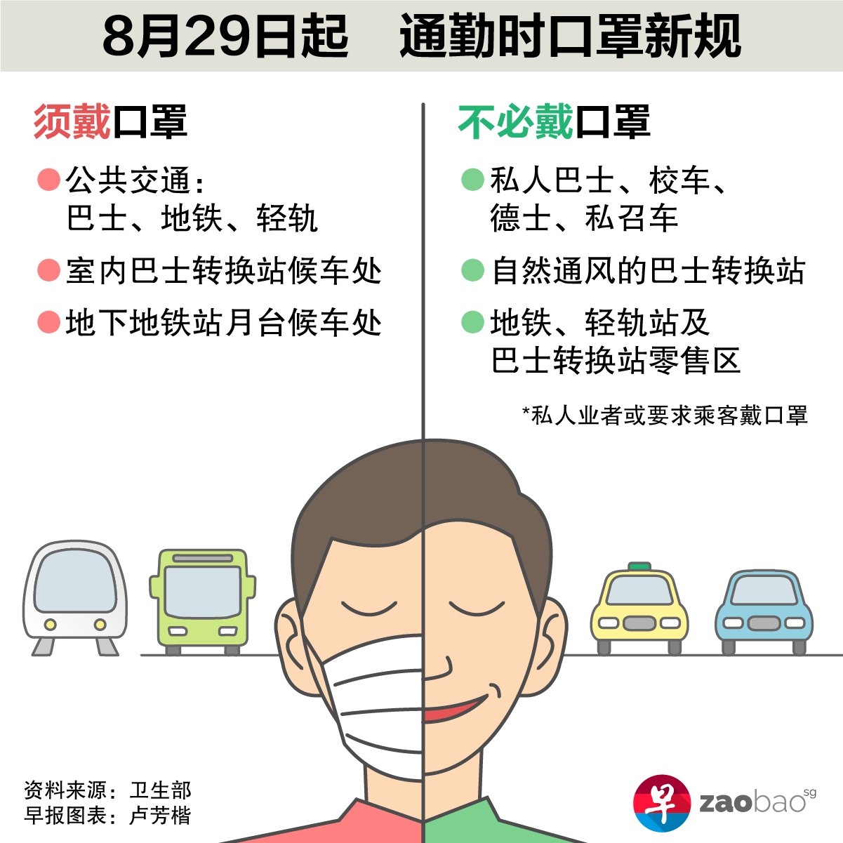 新加坡冠病疫情趋稳,政府宣布进一步放宽口罩条例,看图了解外出通勤时,哪些地方不必戴口罩。