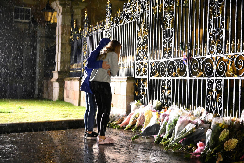英国女王伊丽莎白二世9月8日辞世后,在伦敦街头,民众对她的离世表示哀悼。据英媒报道,英国进入10天的全国哀悼期。女王的遗体将安放在棺木中于9月9日送回伦敦,国葬将于9月18日举行。在国葬举行的前四天,遗体将停放威斯敏斯特教堂大厅,供公众瞻仰。(图/路透社)