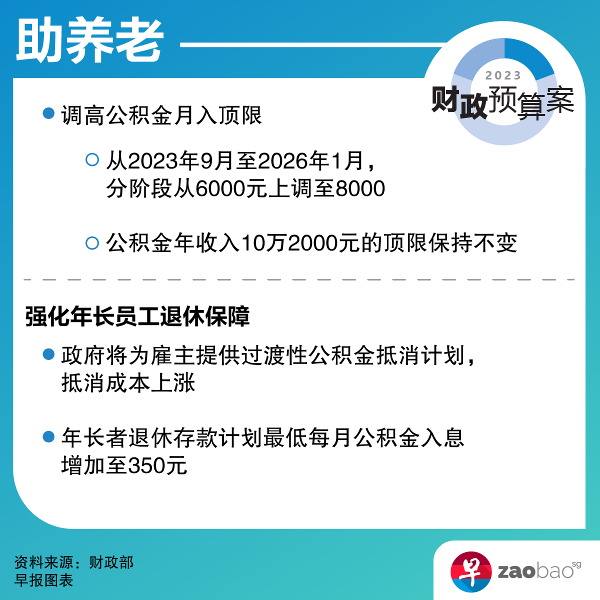 今年9月起,政府也将调高公积金月入顶限,协助中等收入家庭增加退休储蓄。为了强化年长员工及低薪平台人员的退休保障,政府也将调整他们的公积金缴交率。(图:陈锐勤、侯丽欣;文:陈雅恩)