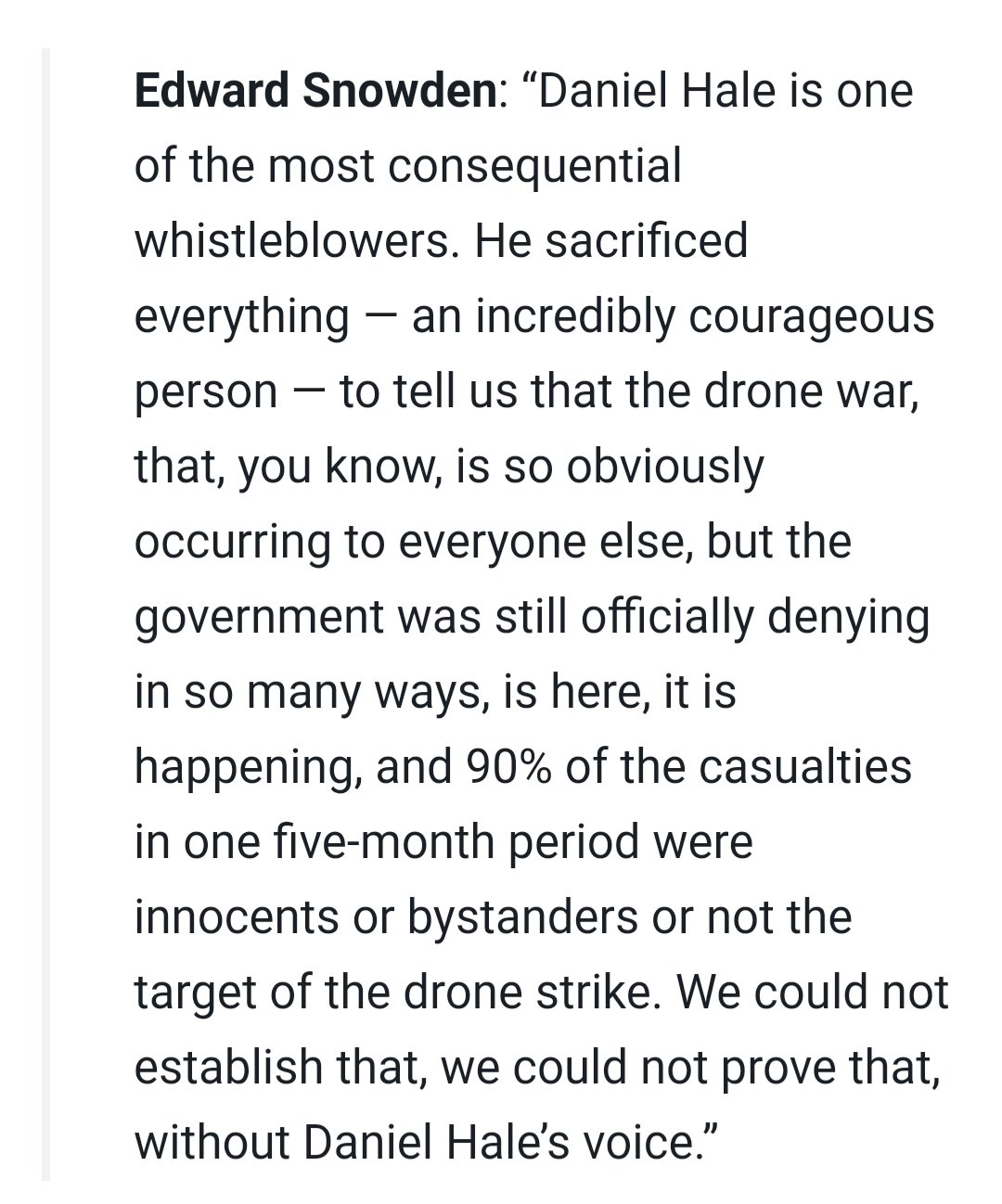 Relevant news on this topic. Because of Hale, we know more about the brutality of America's drone programs & have a look into what America means when continually talking about their "Rules Based Order", which includes the rule that they can blow the F outta ya whenever they want